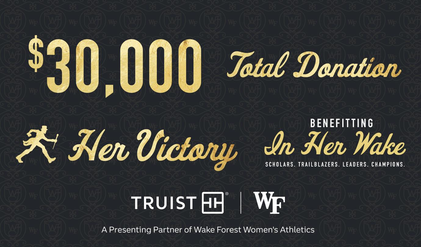 “We are grateful to Truist for their continued investment in Wake Forest Women’s Athletics and Her Victory,” stated John Currie, Vice President & Director of Athletics. “Their $30,000 contribution is not just a testament to the exceptional performances of our female student-athletes—it’s a meaningful step forward in our commitment to providing a World Class Student-Athlete Experience for women in college athletics.”