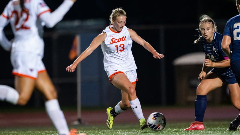 The Scots continued to dominate, and before the first half concluded, first-year midfielder Evelyn Savoie (Northbridge, Mass./Marianopolis Preparatory School) assisted forward Mikayla Edmunds (Falls Church, Va./Georgetown Visitation), resulting in a goal from 18 yards out and bringing the score to 3-0.