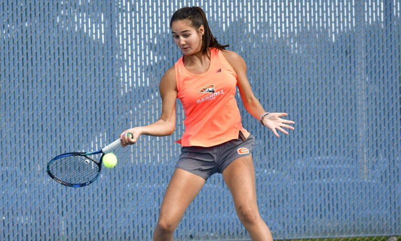 Pupovac showcased her skills with a remarkable 4-0 record during matches against league opponents, specifically North Park and Elmhurst. In her competition against North Park, she paired with Kate Trifilio to secure victory in the doubles match, winning 7-6 (2), which solidified Carroll’s doubles point. When facing Alexandra Pugachova in singles, Pupovac displayed her resilience, ultimately winning the match with scores of 6-2, 4-6, 6-1.